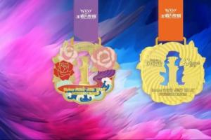本次完赛奖牌由北京冬奥会和冬 残奥会官方设计团队精心打造,奖牌设计匠心独运,将女性奔跑的柔韧与力量凝练为流动的线条,实现了赛事精神与北京城市特色的精妙融合。奖牌正面,北京奥林匹克塔巍然矗立,宛如破土而出的“生命树”,象征着奥运精神的荣耀与传承,寓意奔跑即是生命的绽放。环绕四周的玫瑰娇艳欲滴,巧妙搭配的跑道形似如意,既展现了女性跑者如玫瑰般优雅且充满力量的特质,又暗含“花开如意”的美好寓意。此外,奖牌中融入的水波纹元素取自“上善若水”,为整体设计增添了灵动之感,仿佛在诉说着选手们在奔跑时如潮水般奔涌向前的活力与激情。