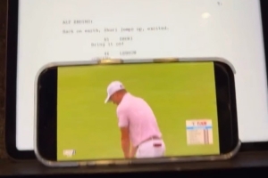 詹姆斯晒出他一边在平板电脑上阅读剧本,一边又在用手机观看高尔夫冠军巡回赛直播的画面,并写道:“工作的同时工作!”