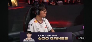 体育资讯8月27日讯 在今日WBG对战JDG的比赛中,Doran选手达成了在LCK的第600次出场,是第2位达成该成就的上单选手,恭喜Doran!