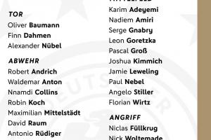 中场:阿德耶米、阿米里、格纳布里、格雷茨卡、格罗斯、基米希、莱韦林、内布尔、斯蒂勒、维尔茨
