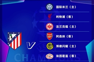 马竞欧冠赛程:开局客战红军第3轮客战枪手,第5轮主场对国米