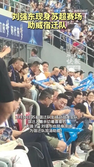体育资讯08月30日讯 据现代快报报道,京东老板刘强东现身苏超赛场,为宿迁队加油。