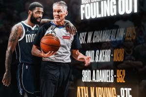 体育资讯08月31日讯 今日,美媒Basketball Forever列出了一项与独行侠后卫凯里-欧文有关的数据——欧文NBA生涯至今从未犯满离场(包括常规赛和季后赛):
