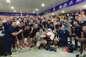 “武汉广电文体在线”发布视频,武汉三镇赛后在更衣室激情庆祝,全队拍摄了大合照,又唱又跳庆祝胜利。