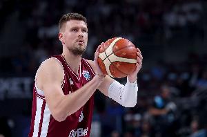 上半场,拉脱维亚球星波尔津吉斯火力全开,打了15分钟9投6中,三分7中5砍下17分6篮板3助攻1盖帽,正负值+28。