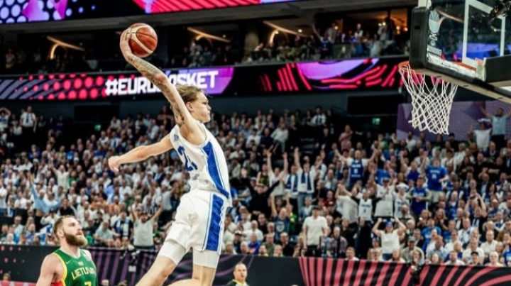比赛第四节芬兰18岁小将米卡-穆里宁再次贡献了一记十分残暴的抢断暴扣,震惊球迷。