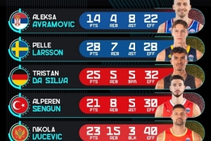 体育资讯9月2日讯 男篮欧锦赛结束了又一个比赛日的争夺,今天,欧锦赛官推晒出了昨日的球员高光表现。