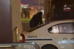 在詹姆斯及其团队成员通关离开虹桥机场时,许多球迷在出口处追逐车辆兴奋呼喊,拍摄到了车内坐在后排座位上的詹姆斯。