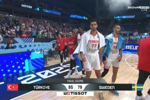 第三节,土耳其找回了自己的节奏,单节净胜13分,将战局的优势扳回到了自己手上。末节,瑞典再度发力一度将比分追平,但土耳其依靠全队的出色表现,稳稳拿下比赛,晋级八强。