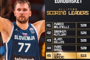 本场比赛过后,东契奇欧锦赛总得分来到515分,暂列历史第45位,排在他前面的是马克-加索尔;而欧锦赛的历史得分王为保罗-加索尔(1183分)。
