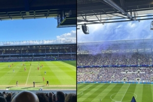 我们现场已经在新球场进行了几场比赛,让我们看看希尔-狄金森球场与之前古迪逊公园球场的视野相比如何。