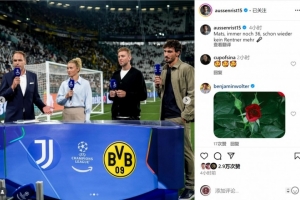 曾效力多特的德国足坛名宿胡梅尔斯参与了这场比赛的现场评述工作,退役不久的他在社交媒体上晒出照片,配文:“马茨(胡梅尔斯),依然36岁,不再是退休人士了。”