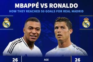 德转晒图:达成皇马50球时,姆巴佩与C罗数据