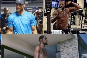 NBA Memes调侃写道:“距离新赛季还有一个月,和老詹、库里比起来,杜兰特(的身材)仍像是一位新秀。”