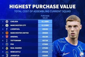 现有阵容花费最多球队榜:切尔西11.8亿欧居首,曼城、红军前三
