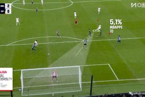 西甲转播给出数据,姆巴佩射门前只有5%的进球机会,最终姆巴佩瞄远打近,门将几乎没有反应。