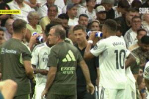 【阿斯:维尼修斯在被换下后摔掉水瓶表示不满,举起双臂抱怨】