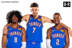 休赛期,雷霆提前续约三巨头,亚历山大4年2.85亿美元,霍姆格伦5年最高2.5亿美元,杰伦-威廉姆斯5年最高2.87亿美元。