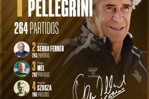 体育资讯9月29日讯 西甲第7轮比赛,贝蒂斯在主场迎战奥萨苏纳,佩莱格里尼迎来自己执教贝蒂斯的第264场比赛,这让他超越洛伦佐-塞拉-费雷尔成贝蒂斯队史执教场次最多的主教练。