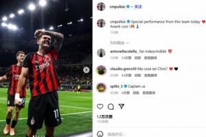 体育资讯9月29日讯 在米兰2-1击败那不勒斯后,传射建功的普利西奇通过社交媒体庆祝了胜利。