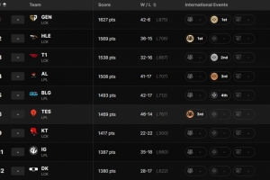 体育资讯9月29日讯 拳头官方更新最新一期中韩各战队最新排名及赛区实力评分;