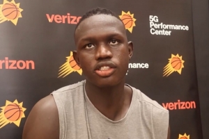 体育资讯9月30日讯 NBA球队新赛季媒体日,太阳10号秀、南苏丹中锋马卢阿奇接受记者采访。