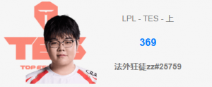 体育资讯10月11日讯 随着S15世界赛的临近各支战队的选手也在加紧训练,根据排位数据网站显示,TES上单369的状态堪忧,近两日峡谷之巅Rank仅赢1局!