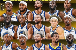 B:库里、波杰姆斯基、巴特勒、追梦、霍福德;