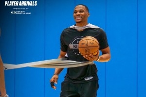 体育资讯10月18日讯 今日国王官方晒出球队训练照,球队新援威少已经来到训练馆,与队友会合。