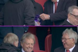 体育资讯10月20日讯 曼联vs利物浦下半场,镜头给到看台上,弗格森在看台上分享巧克力给达格利什,此时比分曼联1-0领先!
