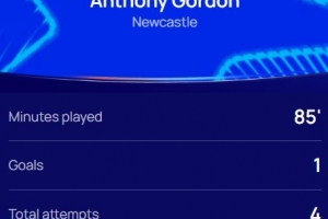 本场比赛戈登首发出场,传射建功,4次射门,跑动距离达到9.5km,赛后他也当选欧冠官方评选出的本场比赛最佳球员。