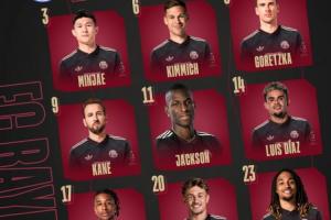 赛前拜仁官方发布的首发阵容图中,夏窗从切尔西租借而来的新援杰克逊似乎与其他队友不太一样——与其他使用正面照的队友不同,拜仁在图中使用了他侧身拍摄的定妆照,这也使得杰克逊在首发图上头部明显比其他队友“大出一号”。