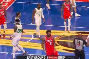 下一篇: 恩比德打进2+1再现大尺度庆祝动作 此前因类似动作已被联盟罚款