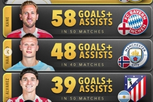 体育资讯11月10日讯 数据网站Score90盘点了2025年五大联赛前锋球员,在各项赛事参与进球榜,其中姆巴佩62球居首,以下为具体情况(进球+助攻):
