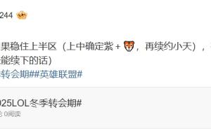 体育资讯11月12日讯 今日微博爆料人“恋恋红茶”更博透露WBG的转会消息:wb如果稳住上半区(上中确定紫+🐯,再续约小天),有意补强竞拍gala(如果ig未能续下的话)