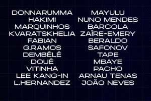 前锋:克瓦拉茨赫利亚、贡萨洛-拉莫斯、登贝莱、杜埃、巴尔科拉、姆巴耶