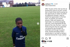 体育资讯6月24日讯 日前,巴特勒-奥耶德吉在个人社媒发文告别阿森纳,写道:
