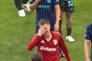 TYC体育报道,赛后17岁河床中场马斯坦托诺痛哭离场。