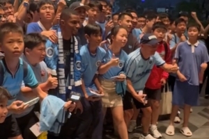 27日晚8点,韦斯利乘坐商务车抵达深圳南山香格里拉大酒店,近百名忠实球迷早已在酒店守候。