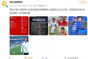 廖锦涛出自恒大足校,恒大足校也对廖锦涛的入选表示了祝贺,恒大足校写道: 祝贺恒大足校培养球员廖锦涛入选国足正式大名单,将参加2025年东亚足联E-1足球锦标赛。